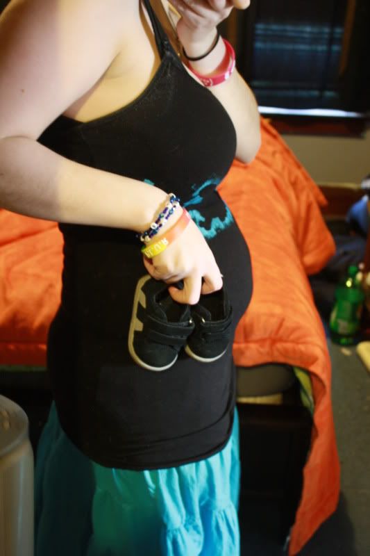 BLUE!!!!! It's a boy!!! He had his legs crossed at the ankles the whole time, so I thought we wouldn't get to see it, but he had his hoo-ha flipped up onto his body. Lucky me! Lol! He is indeed a boy, my instinct was right all along!!! Everything on the ultrasound looked normal/healthy and boy is he cute!! He was drinking/tasting his fluid, opening and closing his mouth and sticking his tongue out at us. I am obviously in love already <3 His heart was beating away at 130bpm this time, and it was really cool to hear it on the ultrasound instead of the doppler because it's A LOT louder and clearer. My regular appointment with my OB will be on Wednesday, so that's all the news I have for now! :) Basic, normal belly pics from early this morning...